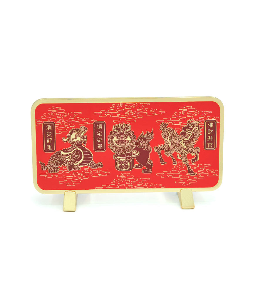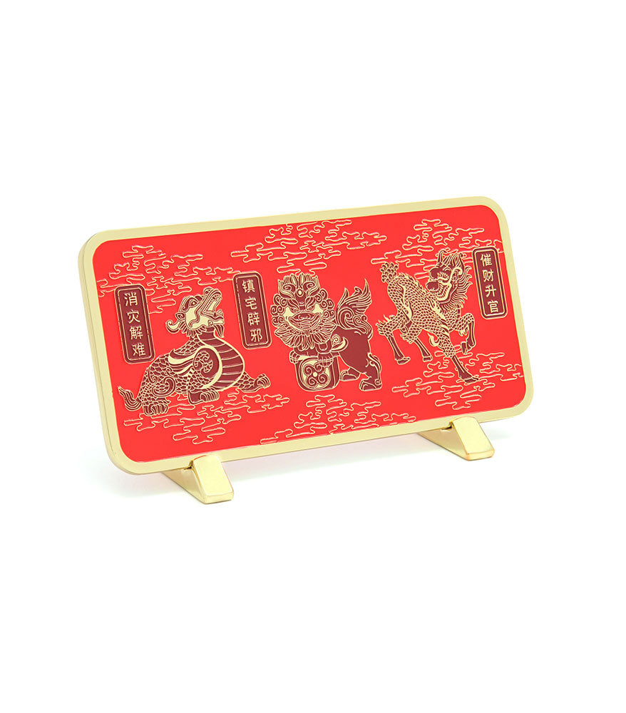 The Three Killings brings 3 kinds of loss and this affliction flies to a different cardinal direction each year. Wherever it appears, it needs to be remedied to prevent it wreaking havoc. In 2025, the 3 Killings flies to the East. This year’s 3 Killings remedy features the 3 celestial guardians – the Pi Yao, Chi Lin and Fu Dog – the most effective cure for this affliction, together with 3 Chinese banners carrying the meanings “Prevent disasters and losses”, “Deflect negative energy and mishaps” and “Provides blessings and protection”. The back of the plaque features the Dependant Arising mantra to amplify the potency of the symbolism and couplets.