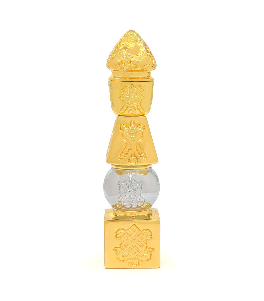 This Pagoda comes with a pair of Fu Dogs for protection and embossed with the OM AH HUM mantra to bestow precious heavenly blessings.