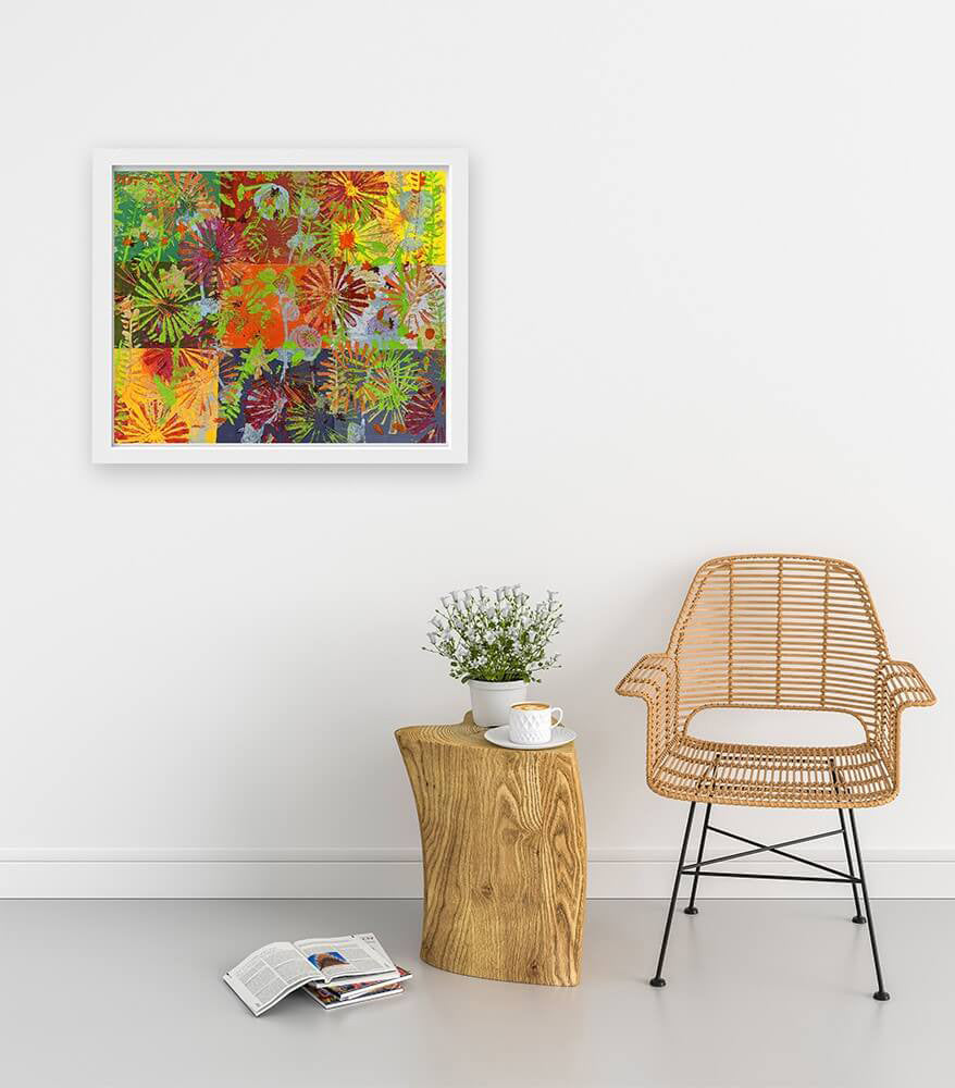 This is a magic print. It can happily be placed anywhere, enlivening any space. The Bagua is a map in Feng Shui incorporating all 5 elements and is completely balanced. For harmony this is a must have print.
