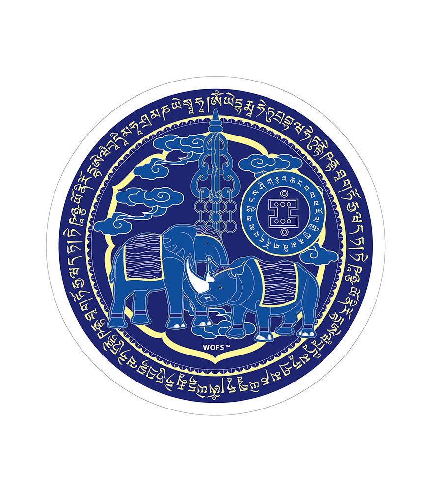 The Blue Rhino and Elephant together are one of the most effective remedies against betrayal, money loss, robbery and violence. This car sticker features this protective pair with Ksitigarbha’s Staff and the amulet that protects against harm caused by others. Stick onto your car window to stay safe against all forms of danger while driving and when out and about. You can also stick onto your windows to keep your home safe against robbers, intruders and anyone who means to cause you harm.