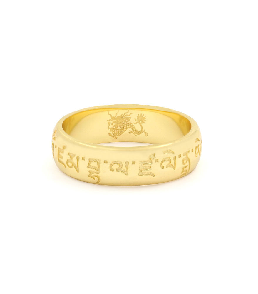 This mantra ring features Yellow Dzambala’s mantra on the outside and a hidden Dragon on the inside. Wear to invoke the wealth-inviting energies of this wealth Deity, to attract prosperity luck and to protect against financial worries of any kind. This ring becomes even more powerful if you regularly chant Yellow Dzambala’s mantra while wearing it.