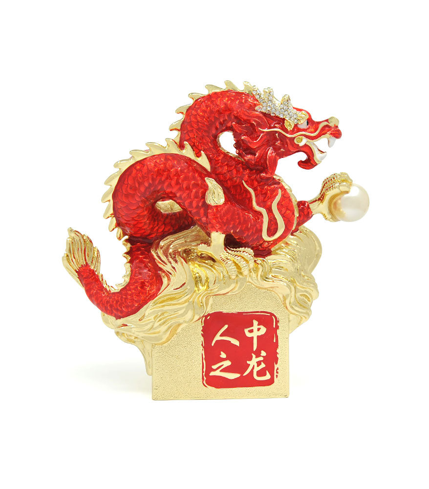 This magnificent red Dragon soaring above the clouds with a pearl in its claw is accompanied with the Chinese couplet "Ren Zhong Zhi Long" or "Dragon Among All Men" to indicate someone who is exceptional, unmatched and outstanding in any field; a phrase often used in reference to the Emperor. It boosts power, courage and success, and bestows recognition and luck to help one rise up the ranks quickly. For those in business, it ensures you always come out on top!