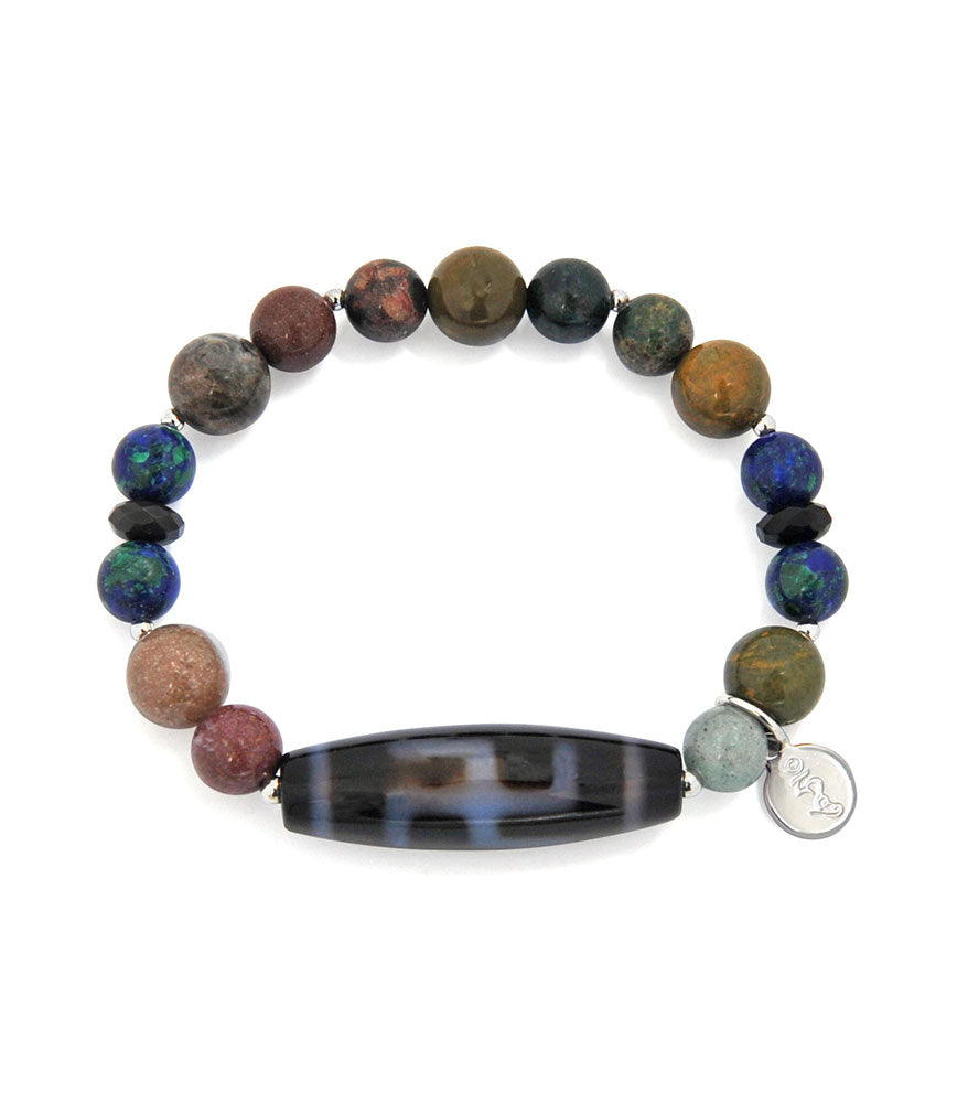 Care instructions: This dzi bracelet contains: azurite beads, ocean agate beads and Dzi Beads. To clean, use a damp cloth but do not soak in water. Silver elements may tarnish when exposed to sweat for prolonged periods; polish with a jewellery cleaning cloth to maintain a quality shine.