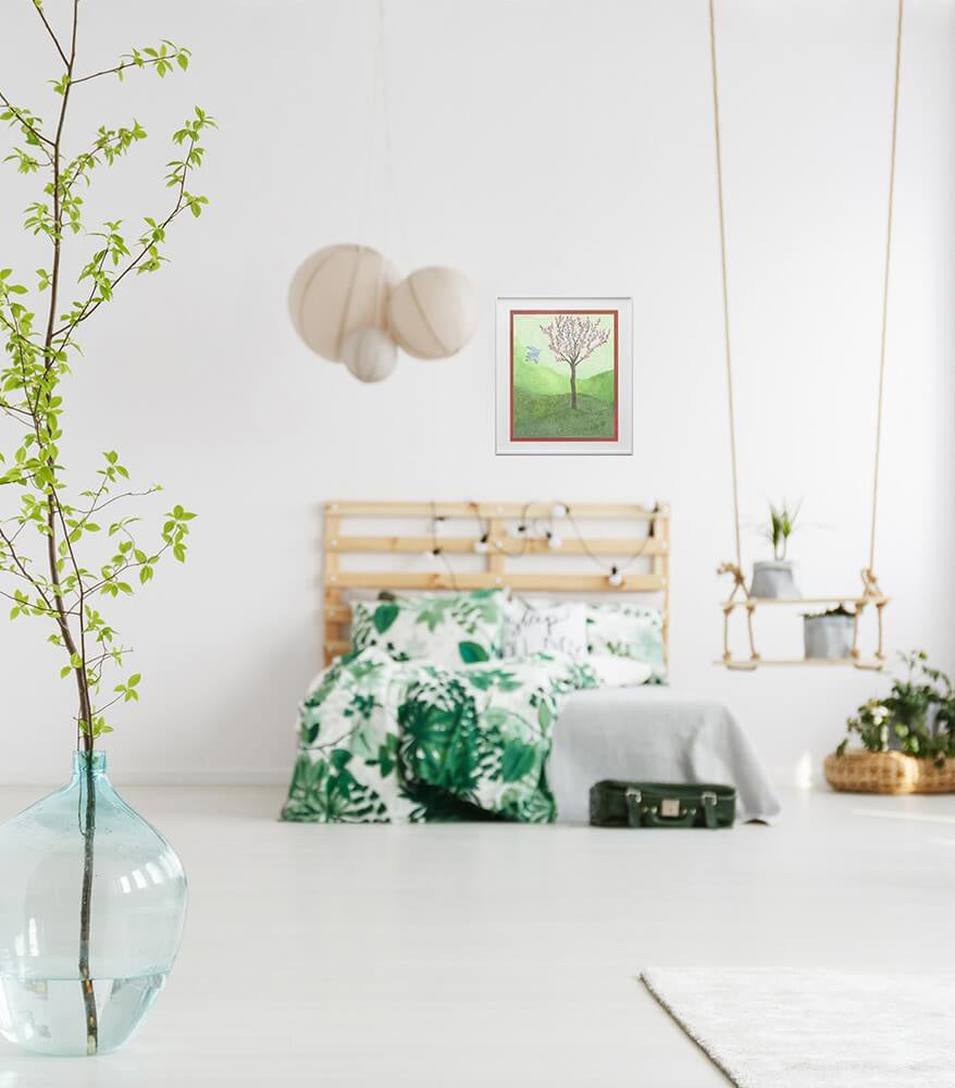 Displaying this print will encourage love into your life. Two birds flying together toward a plum blossom tree will bring auspicious energy. Hang this print in the South-west of your bedroom or of the house for attracting and experiencing an equal loving relationship.
