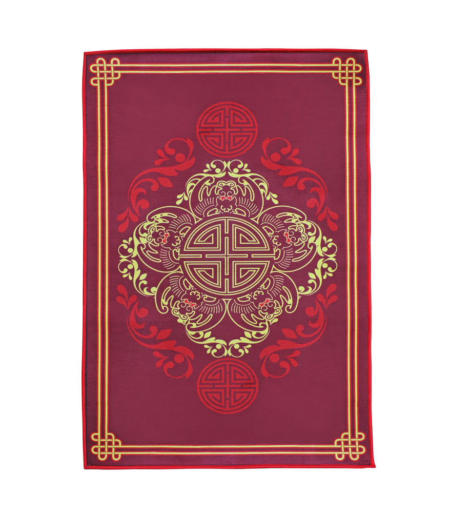 In Chinese, five bats, “Wu Fu Lin Men” means five blessings, symbolising wealth, health, longevity, virtue and happiness. Display this red carpet in the home to attract good fortune from the 5 directions – North, South, East, West and the heavens.