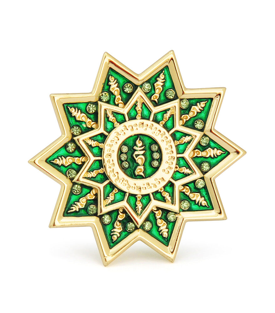 The Green Tara Protection Wheel features TAM, the seed syllable of Tara, who has the power to help you overcome problems and obstacles of any kind. Keeping her amulet close to you at all times ensures she comes to your aid swiftly whenever you need her help. She is also a granter of wishes.