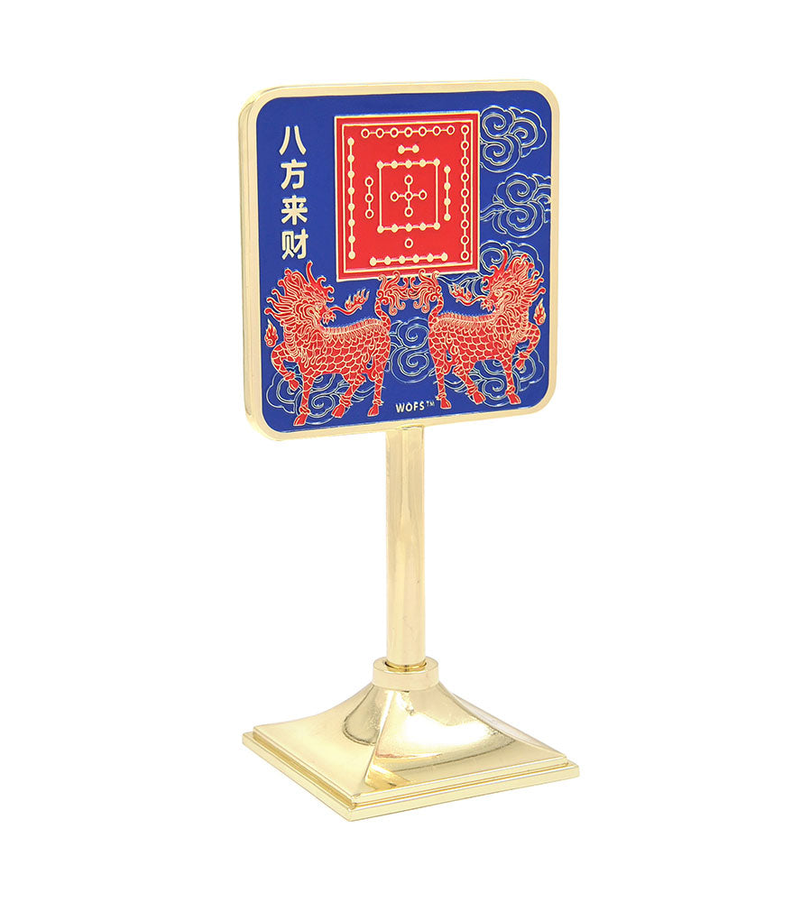 This Ho Tu Enhancing Mirror with magical Ho Tu Square on one side, and brass mirror and wish-granting mantra on the other, activates the special luck of the Ho Tu. With a pair of Chi Lin, the Ho Tu attracts four kinds of fortune into one’s life. It brings intelligence, asset wealth, leadership and commercial success.