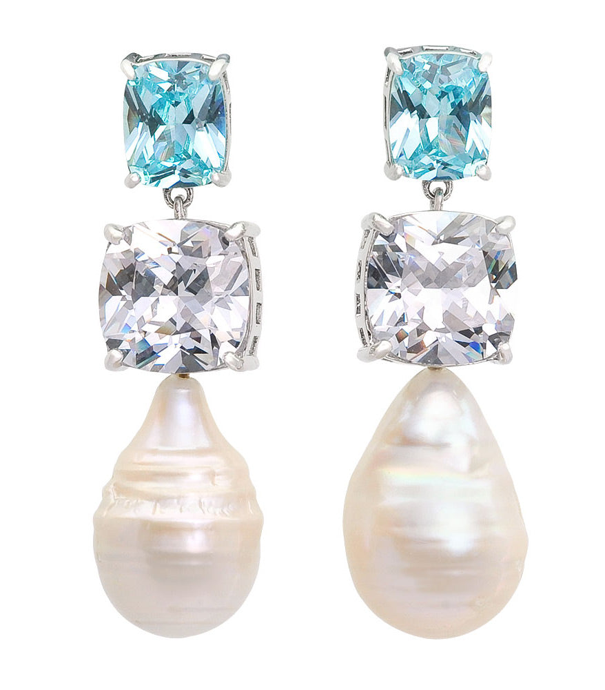 Make: Rhodium Plated with 18K Gold, Grade AAA Zirconia and Freshwater Baroque Pearls with Irregular Shape