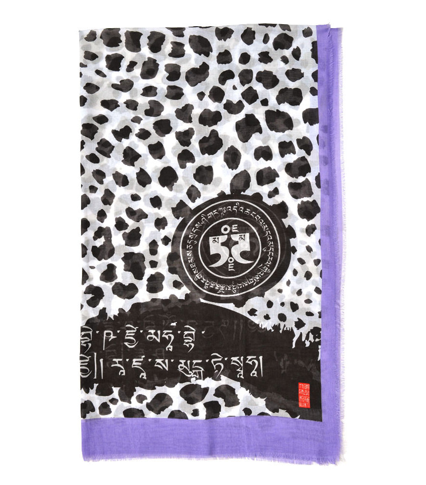 A gorgeous lavendar shade lends a whimsical air to this powerful amulet shawl. Empowered by mantras that protect against being at the wrong place at the wrong time, it is further activated by the fearless energies of the leopard skin. Wear when travelling or when going on at night.