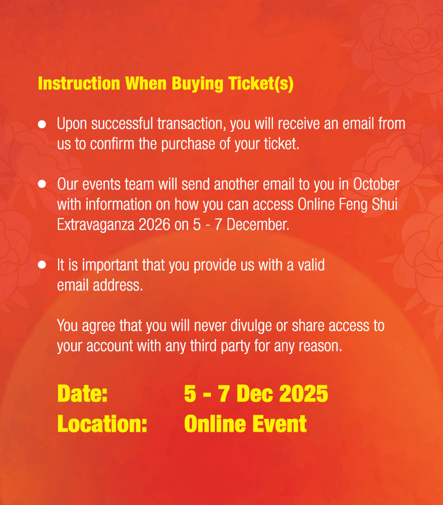 At this year’s Feng Shui Extravaganza, we will take you deep into the Flying Star chart, the 24 Mountains and the Paht Chee of the year to uncover the hidden stars and secret opportunities shaping your destiny.