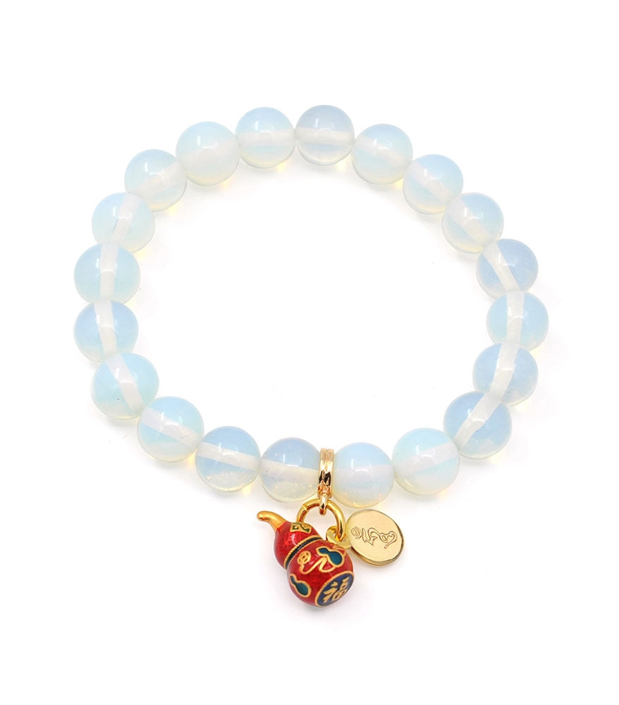 Care instructions: This charm bracelet contains: wu lou enamel charm, man-made white opal beads. To clean, use a damp cloth but do not soak in water. Silver elements may tarnish when exposed to sweat for prolonged periods; polish with a jewellery cleaning cloth to maintain a quality shine.