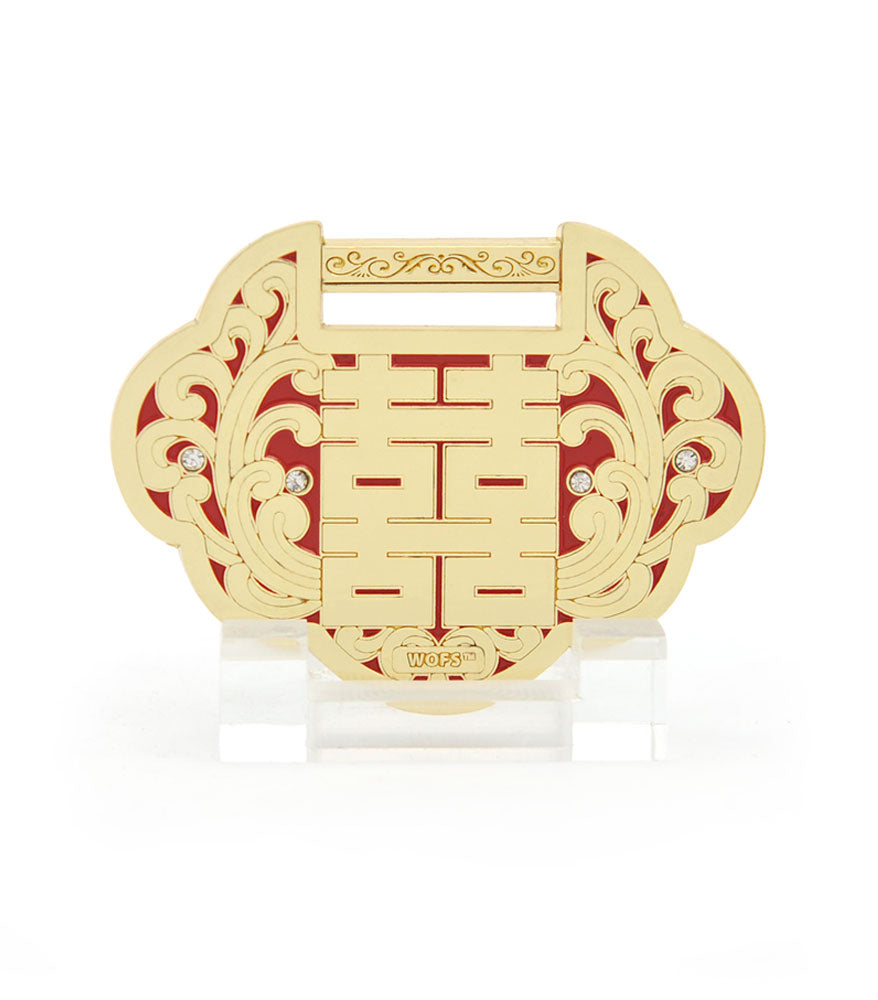 Featuring the Double Happiness symbol on one side, and the Dragon and Phoenix with Love Amulet on the other, this lock coin protects matrimonial harmony between husband and wife and keeps the marriage strong. Display in the sector representing love, or in the sector with the Peach Blossom Star.