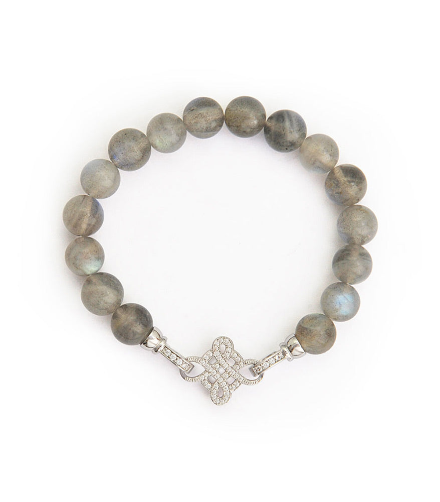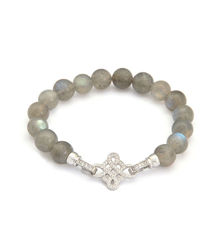 Care instructions: This charm bracelet contains: mystic knot silver charm, moonstone beads. To clean, use a damp cloth but do not soak in water. Silver elements may tarnish when exposed to sweat for prolonged periods; polish with a jewellery cleaning cloth to maintain a quality shine.
