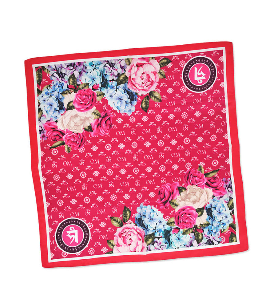 This beautiful scarf from our new magnetizing collection multiplies your inner beauty and attractiveness, making others view you in a positive light. It contains powerful popularity amulets that enhance your charisma. Auspicious symbols of the mystic knot, protection wheel, lotus and seed syllable OM keep you safe from harm. The flowers enhance missing lap chun energy of the year.