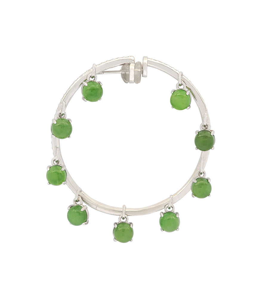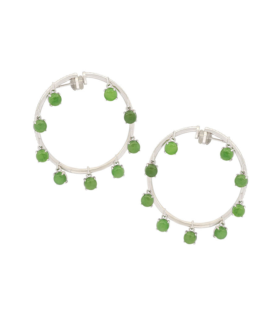 Activate the Power of 9 with these delightful hoop earrings as we move into the new Period of 9. Studded with the best grade zirconia diamonds, each hoop features 9 discs of natural Hetian Jade. Wearing jade is believed to attract good luck, repel negativity, and invite precious blessings from the deities.