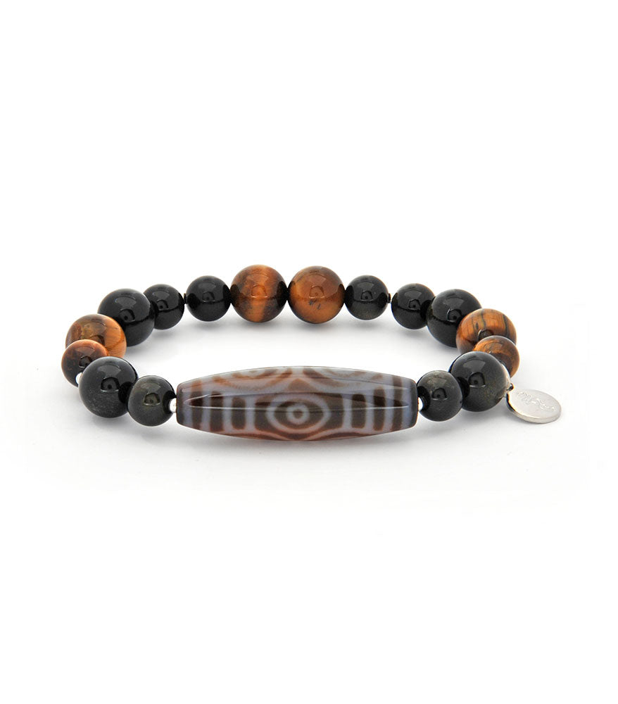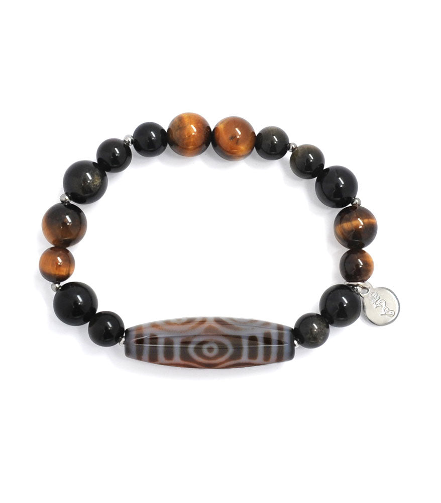 Imbues one with power and vitality. Strung with Tiger Eye and Rainbow Obsidian beads for their healing properties, this bracelet will charge up your inner chi, help you move past mental blocks and safeguard against people with bad intentions.
