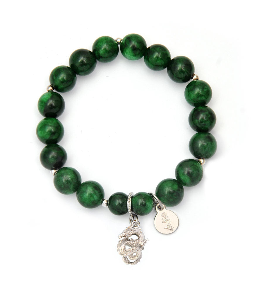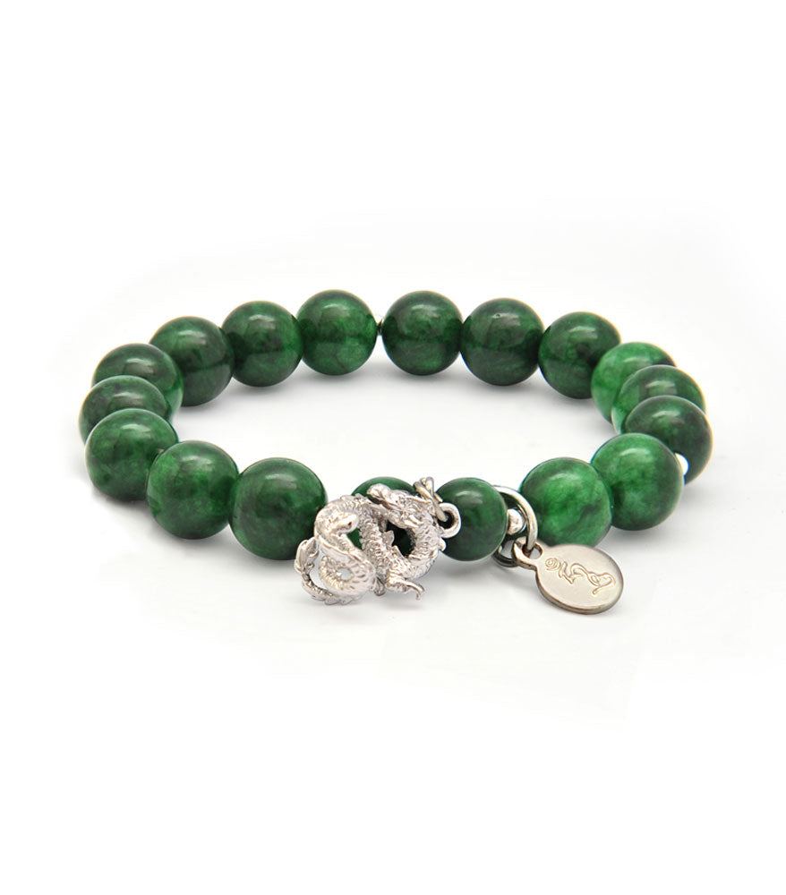 Care instructions: This charm bracelet contains: man-made jade beads, dragon charms to clean, use a damp cloth but do not soak in water. Silver elements may tarnish when exposed to sweat for prolonged periods; polish with a jewellery cleaning cloth to maintain a quality shine.