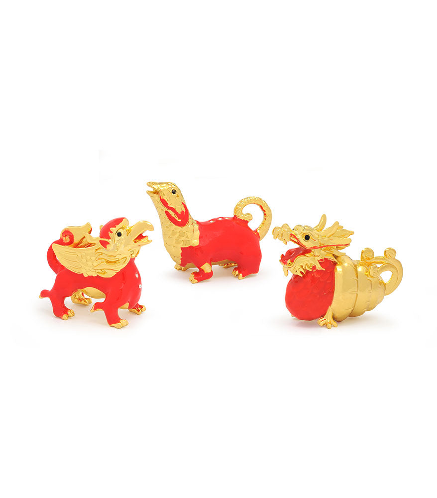 The Three Harmony Animals consist of the 8-Legged Lion, the Fur-Bearing Fish and the Makara Dragon. Rooted in Buddhism, this symbolism is formed by the coming together of 3 mythical creatures from different heritages. When shown together in unity, they represent the quelling of quarrels, the pacification of tempers, and victory over conflict.