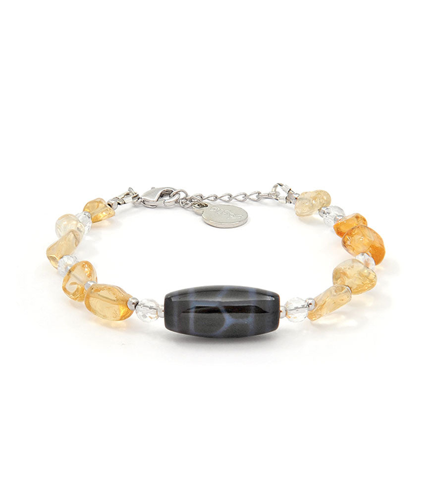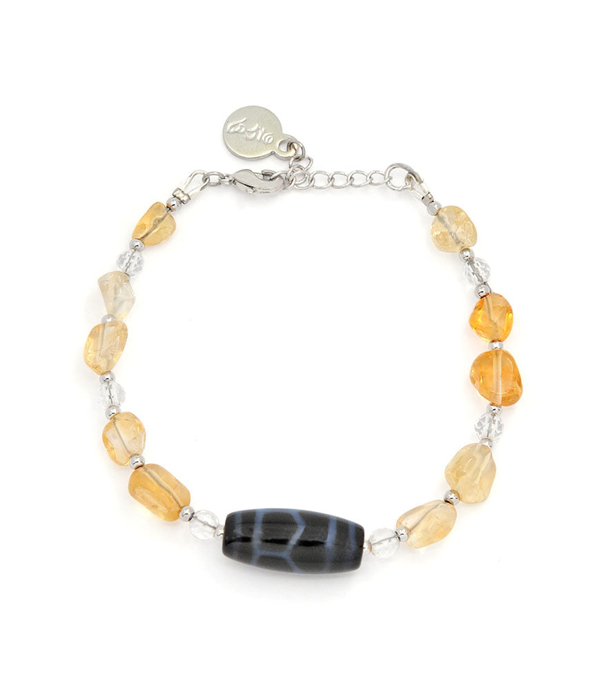 Care instructions: This charm bracelet contains: citrine beads and one quartz Dzi Beads. To clean, use a damp cloth but do not soak in water. Silver elements may tarnish when exposed to sweat for prolonged periods; polish with a jewellery cleaning cloth to maintain a quality shine.