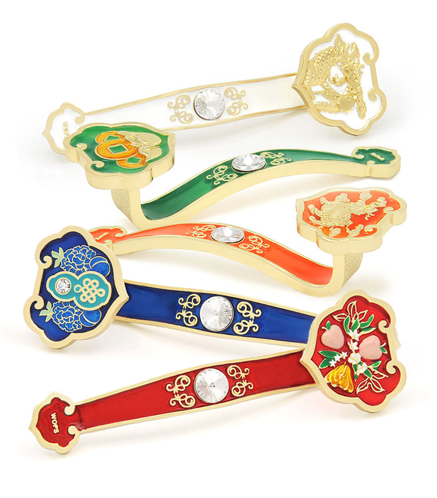 Ru Yi collection comprises 5 different Ruyis to bring 5 different kinds of luck, each one engraved with the wishfulfilling mantra. Best to display all 5, or you can also get the Ru Yi that best represents your main aspiration.
