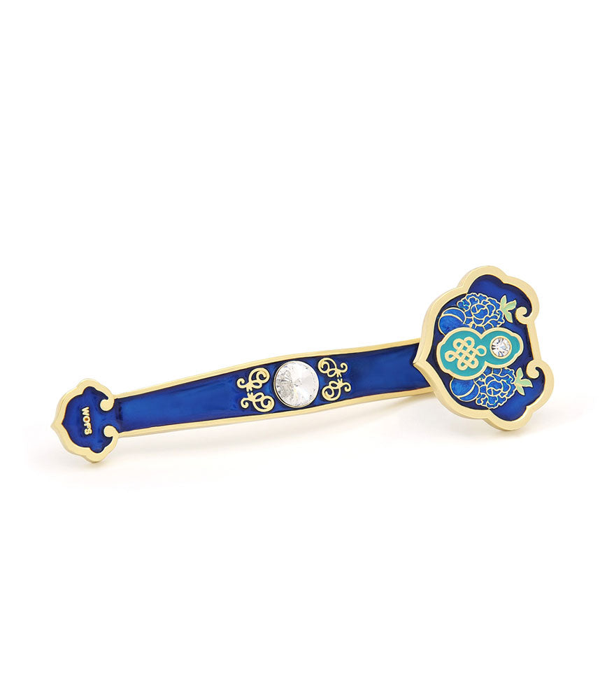 This blue-coloured Ru Yi features the Wu Lou and peach, two powerful symbols of health and longevity. The Wu Lou is the gourd believed to hold the nectar of immortality, and the peach is the fruit closely associated with the Monkey God, and is said to be the fruit of immortality. This ruyi also comes engraved with the wishfulfilling mantra.