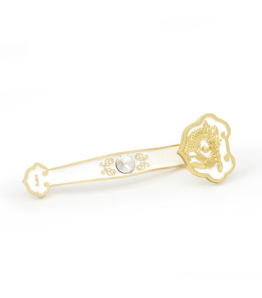 This Ru Yi in white features the Celestial Dragon, a symbol of courage, success, wisdom and the Imperial right to rule. To the Chinese, there is nothing to match up to the Dragon when it comes to symbols of good fortune. White is the color that represents heaven, it is also the color that symbolizes Resource Luck, the most important kind, as this is the kind of luck that allows everything else to be achieved.